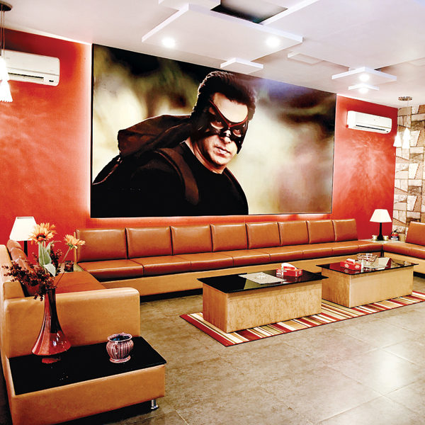 The red-and-brown colour scheme too has been chosen to match that. The rooms — living room, bedroom and kitchen — are spacious and bigger than ever before. A huge sofa that can seat a dozen people has been placed in the living room. Says Subhajyoti, “Salman usually has a team of 25-30 people accompanying him. It includes the channel officials and production guys who need to sit and discuss about the show, so a big sofa was designed.”
