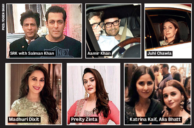 SRK also welcomed his other leading ladies, including Juhi Chawla, Madhuri Dixit and Preity Zinta. His Baazigar co-star, Shilpa Shetty, was also present while Katrina Kaif and Alia Bhatt were twinning in black.
