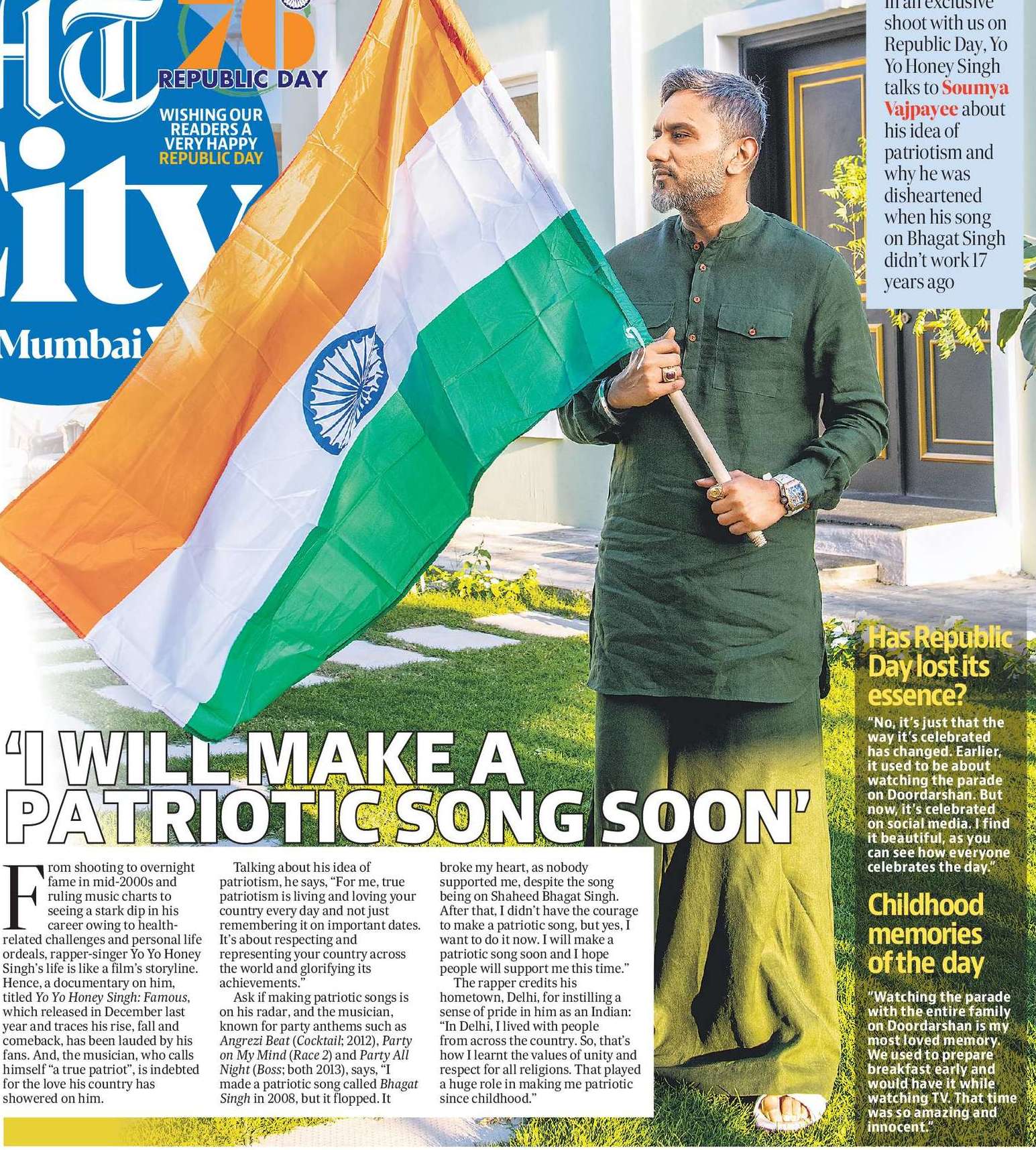 In an exclusive shoot with us on Republic Day, Yo Yo Honey Singh talks to Soumya Vajpayee about his idea of patriotism and why he was disheartened when his song on Bhagat Singh didn’t work 17 years ago