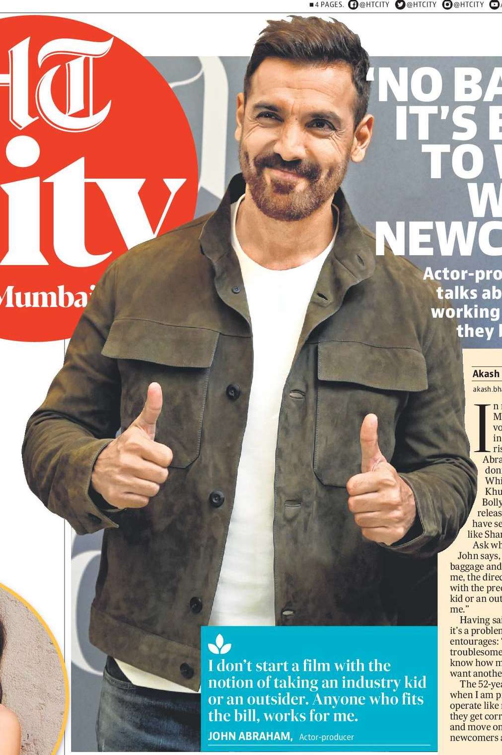 Ask what pulls him towards fresh faces and John says, “A lot of newcomers come with no baggage and it’s easier to work with them. Also, for me, the director’s word is final. I don’t start a film with the preconceived notion of taking an industry kid or an outsider. Anyone who fits the bill, works for me.”